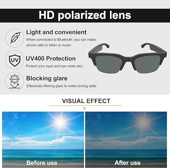 Experience the Future: Combining cutting-edge audio technology with sleek eyewear fashion, our Smart Wireless Bluetooth Sunglasses let you enjoy your favorite tunes and take calls—all while looking effortlessly stylish.